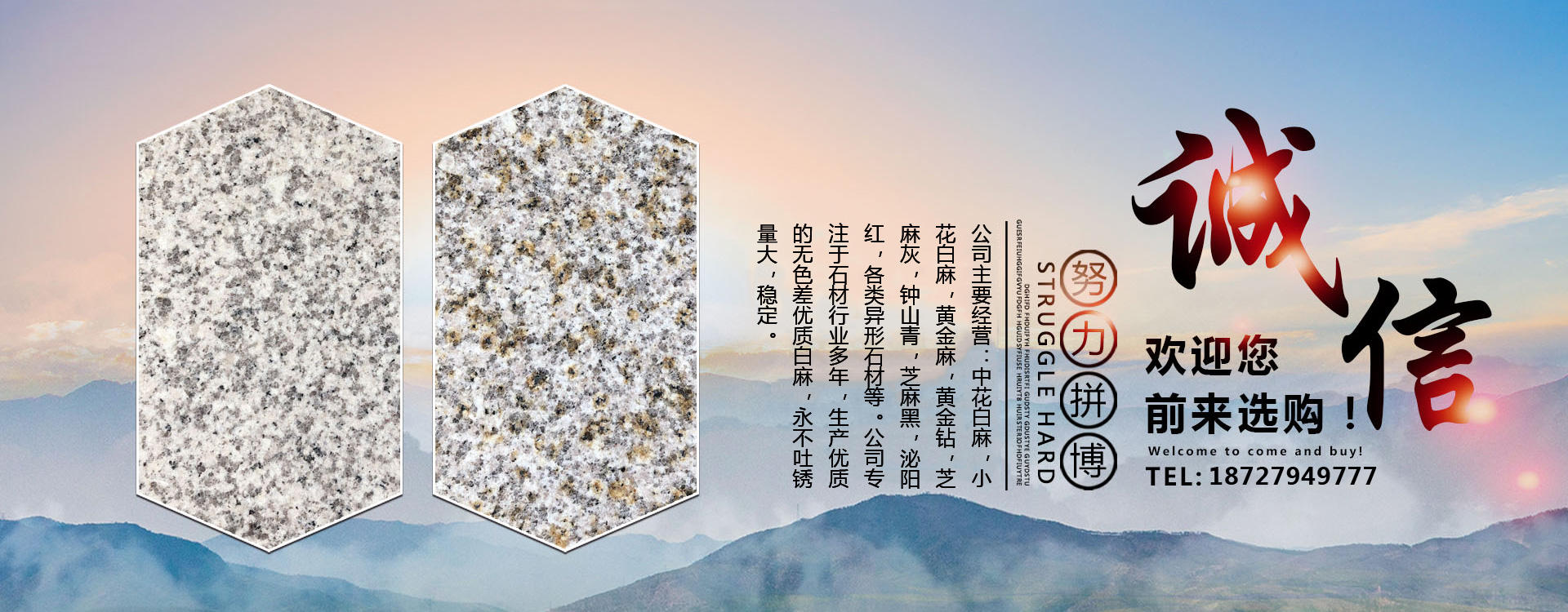 隨州市鑫順石材有限公司位于湖北省隨州市隨縣萬和鎮桐柏山。是一家集礦山開采、石材加工、異形制作、產品銷售為一體的大型綜合型石材企業!本公司主要經營:中花白麻,小花白麻,黃金麻,黃金鉆,芝麻灰,鐘山青,芝麻黑,泌陽紅,各類異形石材。生產的石材規(guī)格齊全、做工精細,被廣泛用于外墻干掛、廣場地鋪、市政園林、建筑工程、環(huán)境景觀異形石材等各類建筑墻體、地面的裝飾裝修。公司專注于石材行業多年,生產優(yōu)質的無色差優(yōu)質白麻,永不吐銹量大,穩(wěn)定,主攻高鐵站,地鐵站,機場等大型市政房產。可承接各種異形加工,速度快,質量無憂。我們秉承“誠信經營,服務為本”的經營理念,竭誠為廣大客戶提供優(yōu)質的產品和滿意服務,期待與您的合作,竭誠歡迎國內外新老客戶前來訂購洽談!